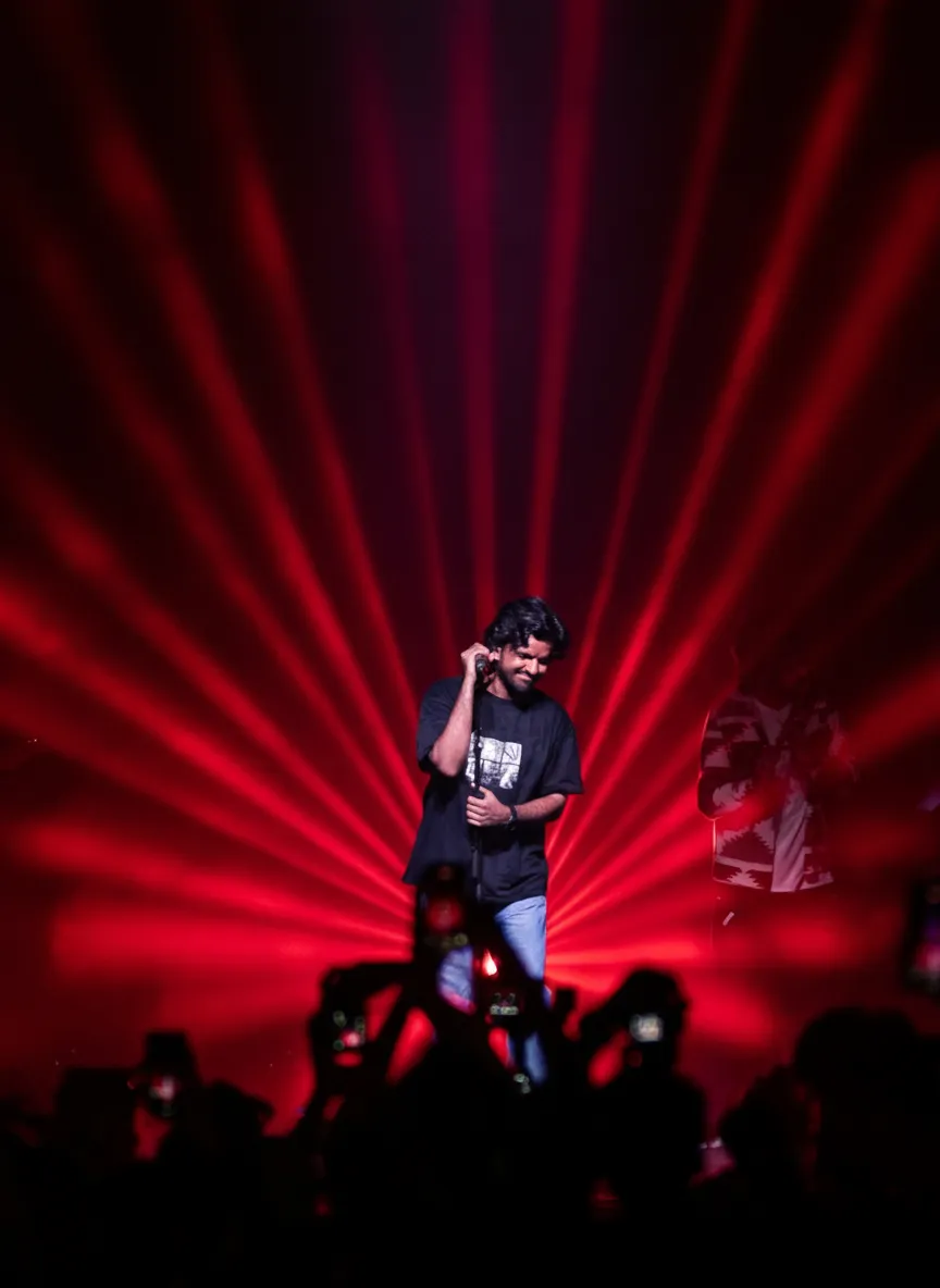 Sooraj Santhosh believes in the power of music to inspire and connect people. He uses his songs to address social issues, advocating for equality, peace and human rights. His music often highlights societal challenges and encourages change, communicating emotions and ideas with authenticity. Known for their deep lyrics and rich melodies, his works such as 'Aalayal Thara Veno' and 'Thani Malayalam' respond to culture, memory and collective human experiences.
